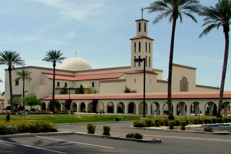 The church: The parish began in the early 1900s as a small mission church and became an independent parish in 1975. Today they claim to be the largest Roman Catholic parish in Arizona. They sponsor several spiritual and social activities, including Bible study, marriage preparation, a charismatic prayer group, Knights of Columbus, a prison ministry, and many others. They are especially proud of their music program (and rightly so – see below), with youth, teen and adult choirs continuing the rich musical heritage of the Western church. They also sponsor Music and the Arts, a non-profit organization that reaches out to the local community with an eclectic program of sacred, classical and popular music.