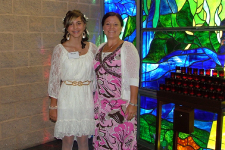 Very noisy, with lots of visiting and scrambling for seats. I snapped a photo of my grand-niece and her mother. Her father, my nephew, passed away last winter.