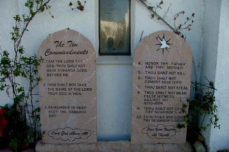 statue of the Blessed Virgin. Two tablets of the Ten Commandments