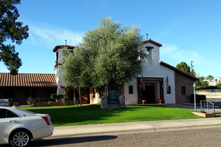 The neighborhood: Wickenburg, about 50 miles northwest of downtown Phoenix, sits on US Route 60, which was the principal road connecting Phoenix with Los Angeles before the coming of the interstate highway system. Even today, persons going from Phoenix to Las Vegas take Route 60 to Wickenburg and then turn off onto Route 93 for the rest of the trip. During the 19th century Wickenburg boomed as a gold mining town, and many of downtown’s original structures survive today, giving it a Wild West ambience. A local curiosity is Jail Tree, to which lawbreakers were chained in lieu of being accommodated in a comfortable indoor cell. Today Wickenburg’s economic well-being rests primarily on the tourist trade. First Presbyterian Church is located on North Adams Street just off Route 60 (Wickenburg Way), a well-scrubbed but decidedly plebeian residential area.