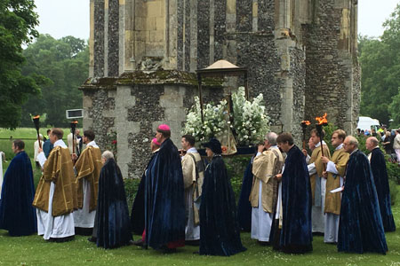 Solemn Concelebrated Mass, Sermon and Procession. The mass had been preceded by a Forty Hours Devotion in the shrine church and an ecumenical vigil of prayer in the Walsingham parish church.