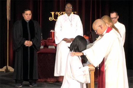 The cast: The Revd Bishop Robert Hoshibata, Bishop of the Desert Southwest Conference, officiated. The Revd Brian Kemp-Schlemmer, pastor of City Square Church, Phoenix, preached. The names of others taking part in the service were displayed on screen as they performed their roles, but they are too numerous to mention.