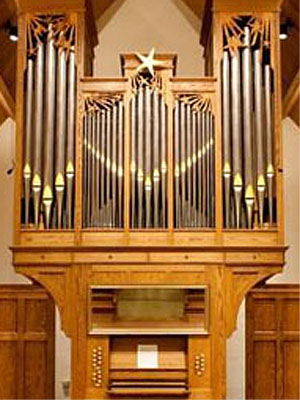 Organ beautifully played! What a marvelous instrument! It is a tracker organ, opus 54 of the Bedient Pipe Organ Company of Lincoln, Nebraska, dating from 1997. It was revoiced in 2013 by Robert I. Coulter Organbuilders of Atlanta. The tempo of several of the service hymns was faster than ours at home, and that mirrored the upbeat tone of the entire service.