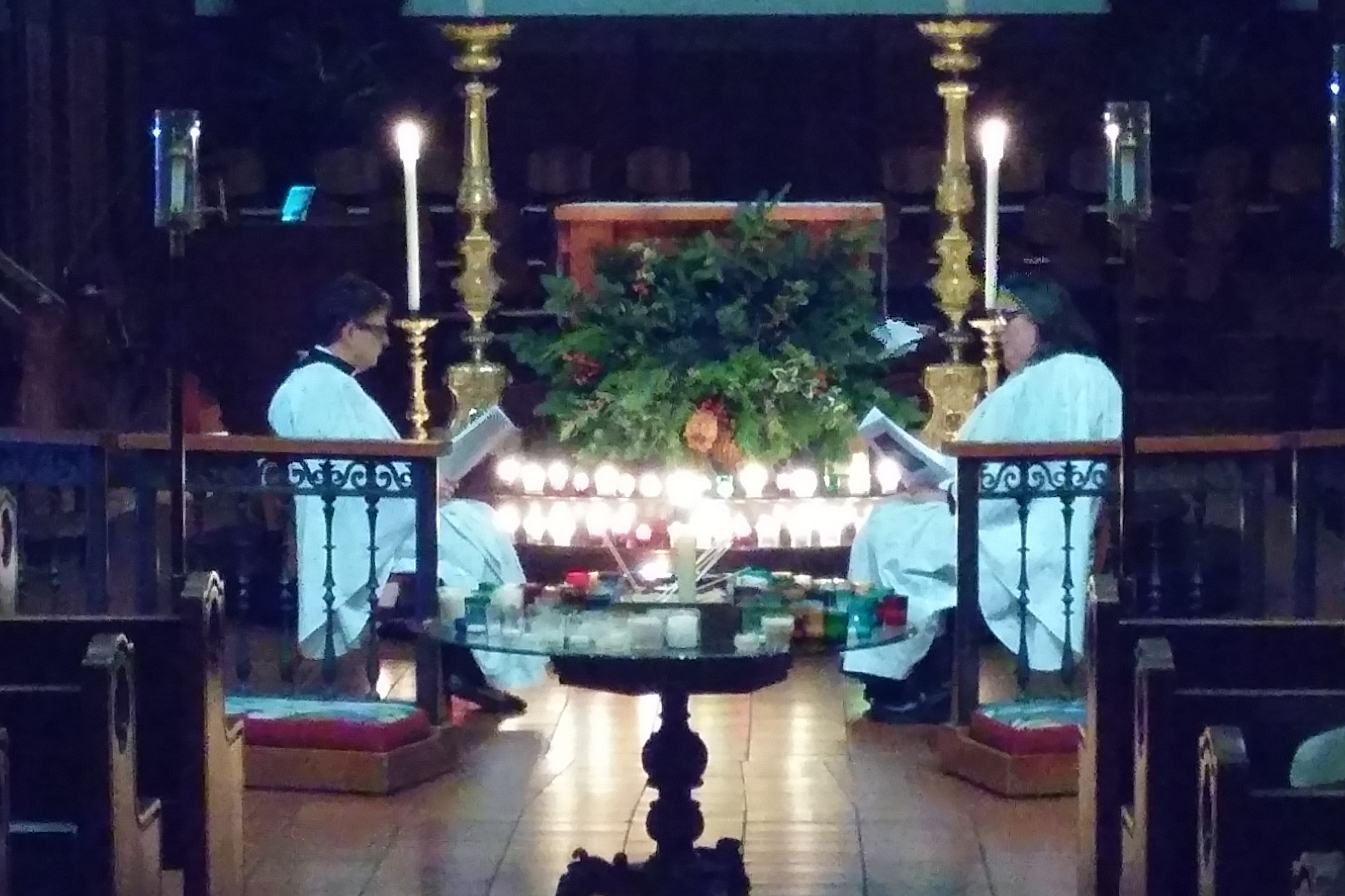 The cast: There were two women clergy vested in cassock, clerical collar, and the longest surplices I have ever seen – down to their ankles! But they were not named in the service leaflet, and it was too dark in the cathedral to make out their faces in good enough detail to look them up on the cathedral’s website.