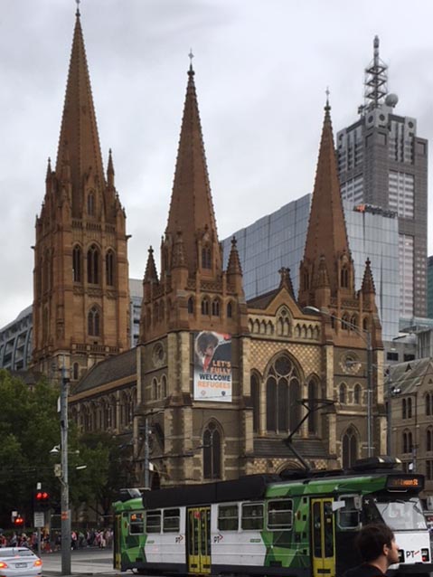 The neighbourhood: The cathedral stands on the traditional lands of the Kulin Nation, on the edge of Melbourne’s central business district. It is not far from the banks of the River Yarra and directly across the road from the Flinders Street railway station, the first to be built in Australia and said to be the busiest railway station in all of Australia.