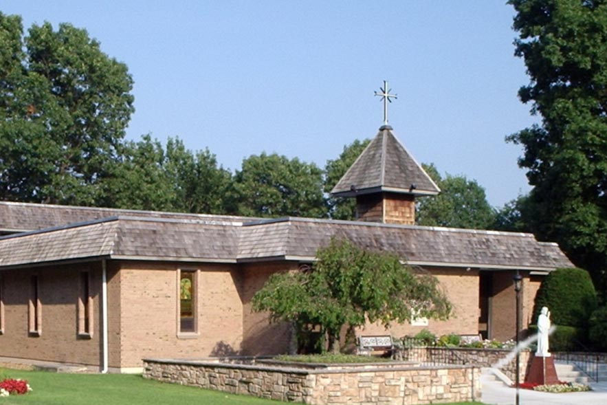 The building: The church consists of a very large parking lot, parish center, and small plain church. The parish is just over 50 years old so the church would most likely date to around 1968.