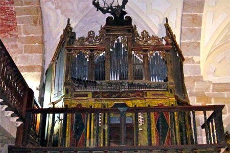 A young woman played a tune on a classical guitar before the service began, and did so as well after the communion. The gallery holds an old tracker organ that is probably not in playable condition.